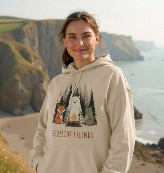 “Fireside Friends” – Organic Cotton Hoodie with Cozy Forest Animals