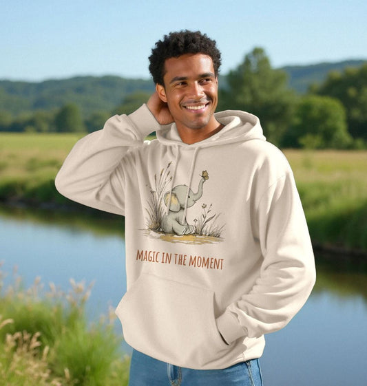 “Magic In The Moment” – Organic Cotton Hoodie with Baby Elephant & Butterfly Design
