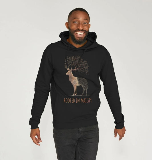 “Rooted in Majesty” – Organic Cotton Hoodie with Deer & Tree-Antlers Design