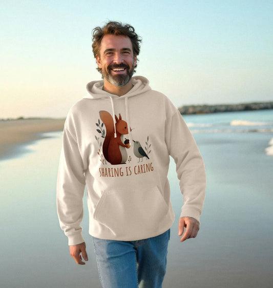 “Sharing is Caring” – Organic Cotton Hoodie with Squirrel & Bird Design